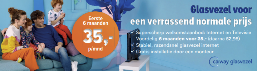 Bij Caiway betaal je de eerste zes maanden € 35 voor jouw Internet of Internet & TV pakket (daarna vanaf € 45,00 voor Internet & Televisie) én twaalf maanden ESPN Compleet voor maar € 5 per maand. Het eerste jaar krijg je bovendien drie slimme Wifi punten gratis in bruikleen (daarna € 3 per maand) voor een slim bekeken Wifi dekking in huis.