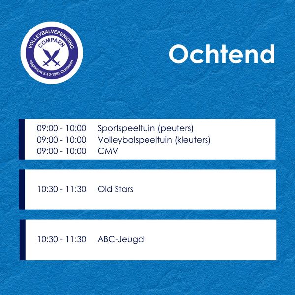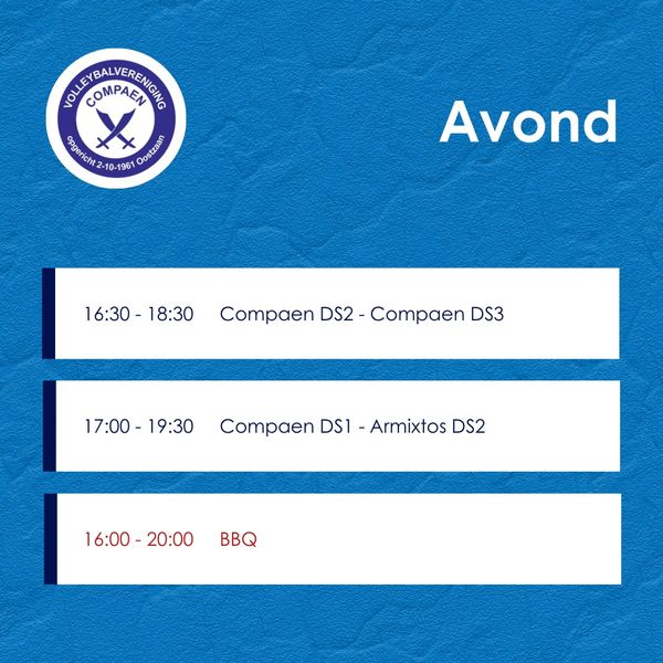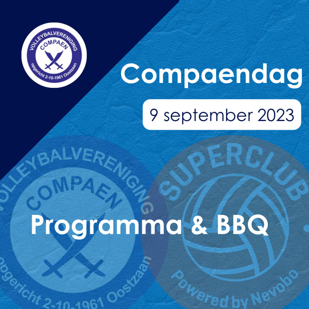Onze club begint het seizoen zaterdag 9 september met de traditionele Compaendag. De hele dag zijn er voor alle geledingen van onze vereniging activiteiten in Sporthal Oostzaan. Onderstaand zie je nog even ter herinnering een programma van die dag en de deelname aan de bbq.