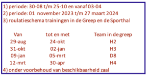 Periode 30 augustus t/m 25 oktober 2023 en vanaf 03 april 2024.